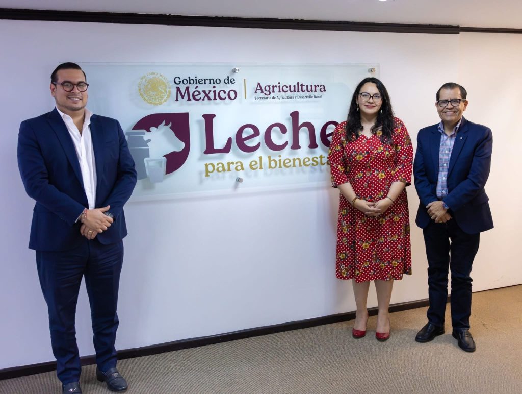 El encuentro fue encabezado por Antonio Talamantes Geraldo, director general de Leche para el Bienestar, acompañado por Lizeth Tabla Moya, directora nacional de Operaciones de Alimentación para el Bienestar, y Víctor Hugo Pérez Rojas, director nacional de Operaciones del mismo organismo.