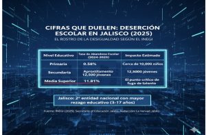 Guadalajara, Jalisco – Los datos más recientes publicados por el INEGI y la Secretaría de Educación, procesados con cifras definitivas al cierre de 2025 y proyecciones para el ciclo 2025-2026, revelan que Jalisco enfrenta un desafío crítico en la permanencia de sus estudiantes. Aunque los discursos oficiales resaltan la innovación, la estadística cruda muestra que el abandono escolar sigue siendo un síntoma de profundas carencias sociales y de un sistema de «competencias» que no logra abrazar la diversidad del talento humano.
